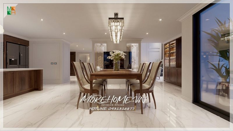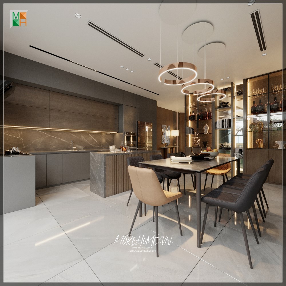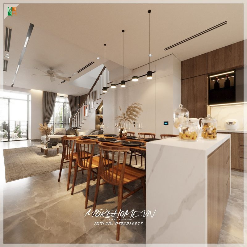 Thiết kế không gian mở thoáng đãng kết hợp phòng ăn liền bếp tiện lợi thoải mái cho sử dụng, thẩm mỹ cao cho không gian