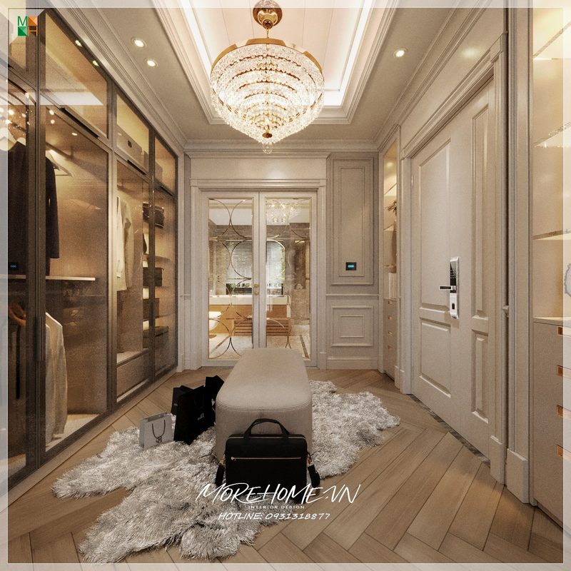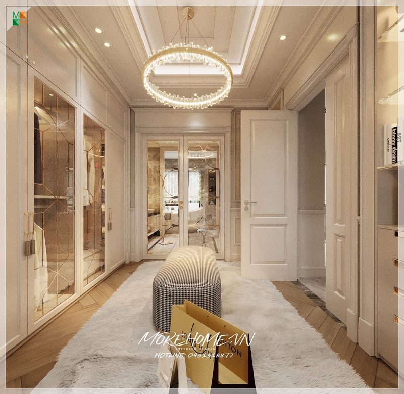 Đèn tròn cũng góp công vào trang trí phòng thay đồ thêm hiện đại với ánh sáng vàng tạo sự lung linh và không có hại cho sức khỏe của gia chủ.