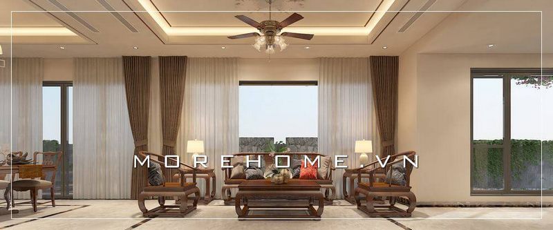 Trang trí nội thất phòng khách biệt thự, nhà phố đẹp với đồ nội thất gỗ tự nhiên phong cách tân cổ điển sang trọng, xu hướng được nhiều khách hàng lựa chọn cho trang trí nhà.