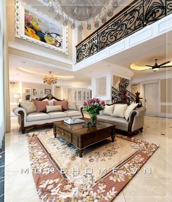 Thiết kế phòng khách của biệt thự, nhà phố ấm cúng, mà sang trọng với nội thất tân cổ điển đầy tinh tế, nghệ thuật.