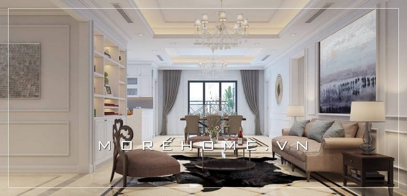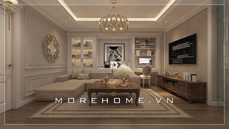 Thiết kế phòng tiếp khách sang trọng cho chung cư cao cấp phong cách tân cổ điển thể hiện đẳng cấp cho gia chủ