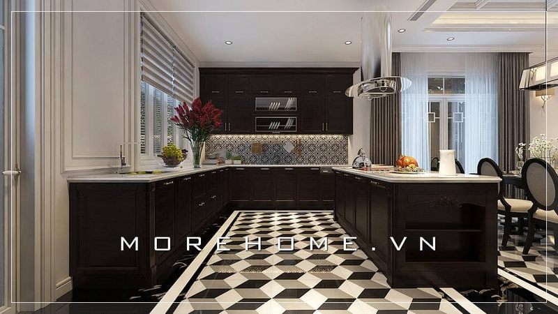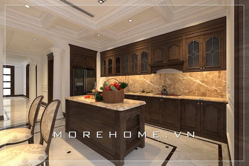 Thiết kế nội thất phòng bếp biệt thự tân cổ điển cao cấp, sang trọng và tiện nghi