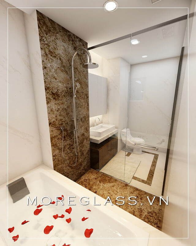 Sự kết hợp giữa mẫu đá tự nhiên và ốp phòng tắm cao cấp sẽ làm nổi bật điểm nhấn của căn phòng.