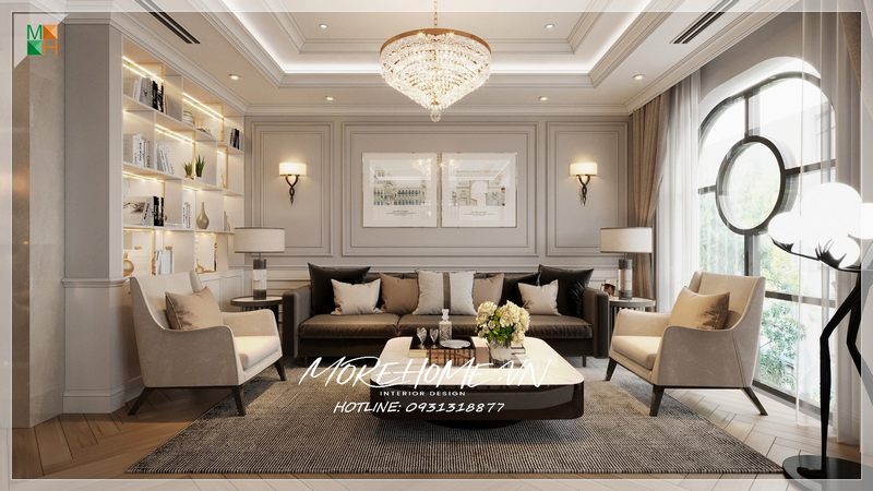 Việc thi công nội thất cho showroom đá phong thủy An Thiên cao cấp theo phong cách tân cổ điển.